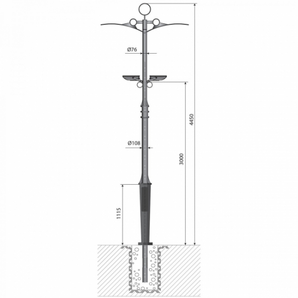 Декоративная опора "Колизей" - 1 - 6,4 предназначена для освещения парков, скверов, набережных, аллей, коттеджных посёлков, прилегающих территорий.