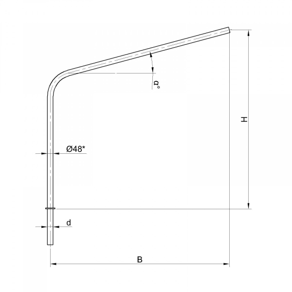 Однорожковые кронштейны К2-1,7-1,3-0-1 предназначен для крепления светильника на трубчатой опоре освещения. Завод опор освещения «Альдекс» изготавливает однорожковые консольные кронштейны из стального проката. Собственное производство позволяет выполнять изделия надлежащего качества и в кратчайшие сроки. Конструкция однорожковых кронштейнов К2-1,7-1,3-0-1. Конструкция консольных однорожковых кронштейнов К2-1,7-1,3-0-1 представляет собой гнутую металлическую трубу заданных размеров.