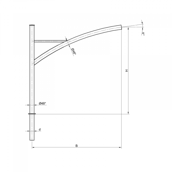 Однорожковые кронштейны К76-1,0-1,5-1-1 предназначен для крепления светильника на трубчатой опоре освещения. Завод опор освещения «Альдекс» изготавливает однорожковые консольные кронштейны из стального проката. Собственное производство позволяет выполнять изделия надлежащего качества и в кратчайшие сроки. Конструкция однорожковых кронштейнов К76-1,0-1,5-1-1. Конструкция консольных однорожковых кронштейнов К76-1,0-1,5-1-1 представляет собой гнутую металлическую трубу заданных размеров.